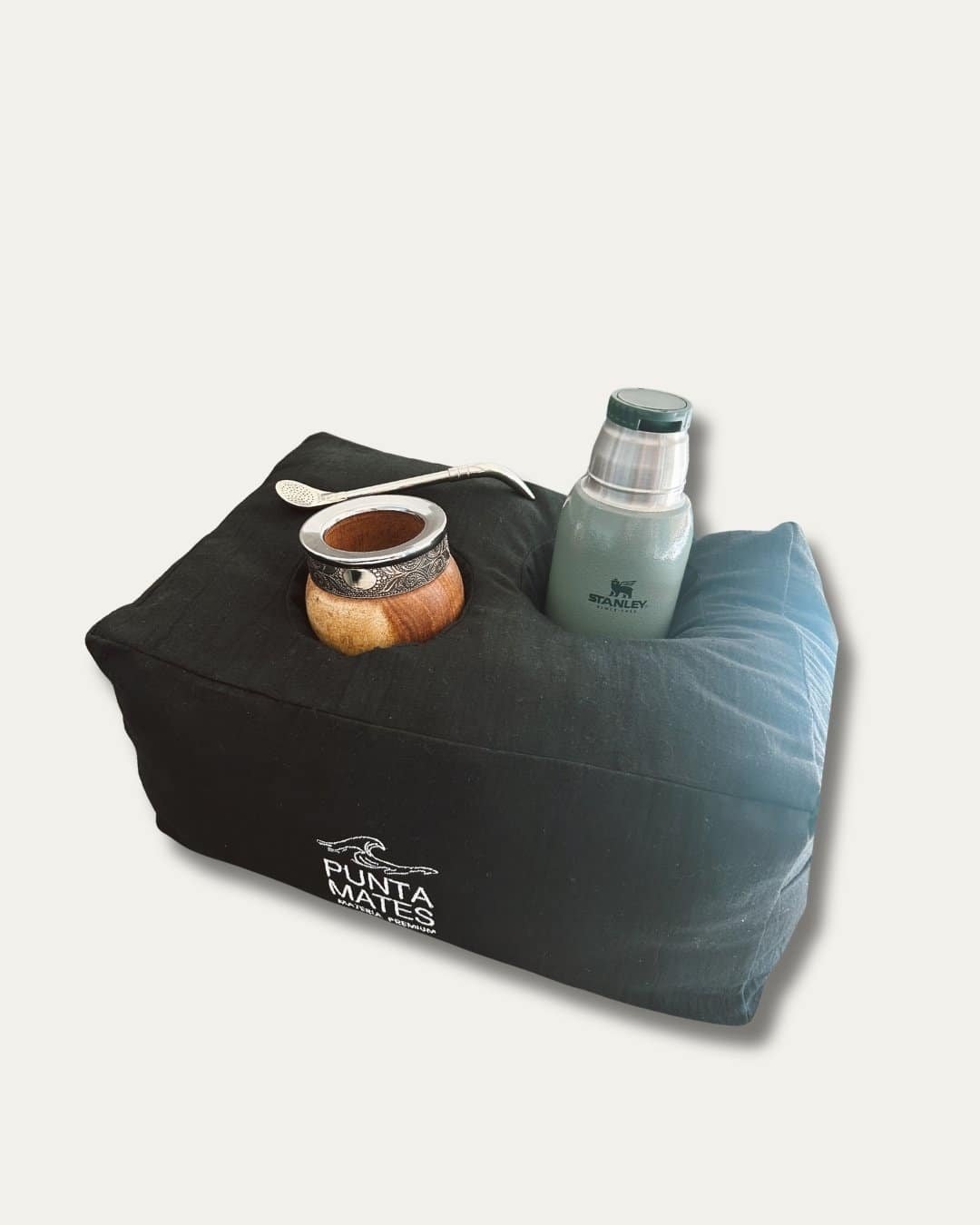 Ideal para disfrutar del mate con total comodidad en la cama o el sillón. Diseñado para elevar tu experiencia matera. Su estructura firme y funcional integra espacios para mate y termo, brindando estabilidad y comodidad en cada uso. Incorpora bolsillos laterales para celular y controles, manteniendo todo al alcance.